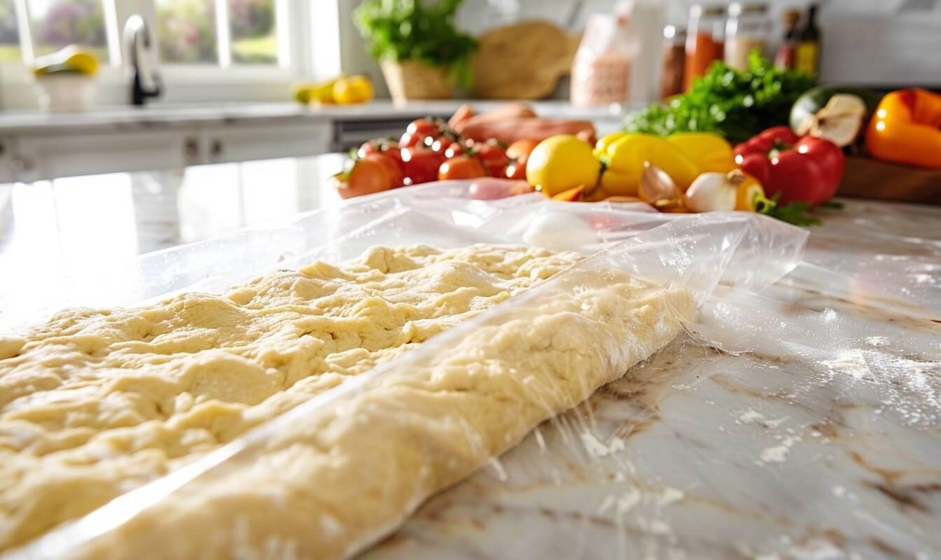 Pour préparer votre pâte à pizza, formez-la en boule, puis enveloppez-la hermétiquement dans du film plastique ou placez-la dans un sac de congélation pour éviter les brûlures de congélation.